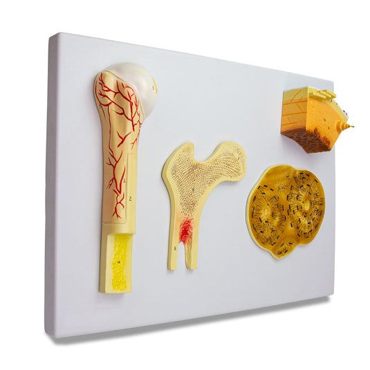 Mô hình xương, 4 phần [SKU: MG23172] Gồm 4 phần và thể hiện các cấu trúc khác nhau của xương người. Cấu trúc bên ngoài của xương đùi với màng xương, mạch máu, xương xốp và...