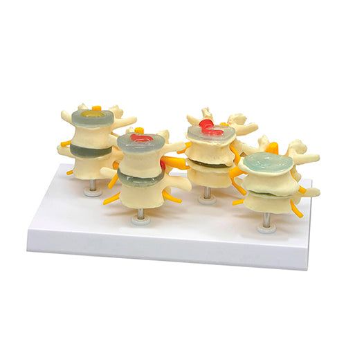 Mô hình đốt sống thắt lưng, 4 giai đoạn là mô hình đốt sống thắt lưng 4 giai đoạn với kích thước thật bao gồm 2 miếng đốt sống - 1 cho mỗi tình trạng sau: bình thường, đĩa đệm thoát vị "phình".