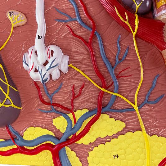 Mô hình phần da, phóng đại 40 lần [SKU: MG21893] Mô hình phần da được phóng đại 70 lần kích thước tự nhiên, so sánh một phần da có lông với một phần da không có lông. Tất cả các cấu trúc bao gồm cả những phần nhạy cảm...