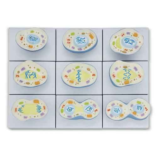 Mô hình phân bào, 9 phần Sản phẩm này gồm chín bộ phận khác nhau, mô tả các giai đoạn chính của quá trình phân bào tế bào động vật có vú (kỳ đầu, kỳ giữa, kỳ sau và kỳ cuối) với độ phóng đại...