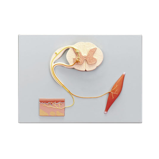Mô hình thể hiện các yếu tố cảm giác, thần kinh và vận động của một tế bào phản xạ soma. Được làm từ vật liệu tổng hợp bền lâu. Được gắn trên nền polymer bền; kèm theo là một mô hình giải phẫu 3D tương tác với thực tế tăng cường, là một công cụ tuyệt vời để khuyến khích việc học và hỗ trợ. Nền tảng này cho phép sinh viên tham gia vào phân tích so sánh các mô hình giải phẫu khi họ so sánh và đối chiếu cấu trúc của các cơ quan riêng lẻ. Sáng kiến này cũng cung cấp một nền tảng cho giáo dục liên tục, tạo cơ hội cho tất cả sinh viên nâng cao kiến thức về giải phẫu, sinh lý học và bệnh sinh học.
