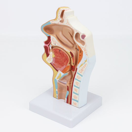 Mô hình cắt ngang xoang mũi và miệng kích thước thật, đại diện cho một phần gần giữa mũi và các khoang mũi. Các chi tiết bao gồm khoang mũi, khẩu cái mềm và cứng, lưỡi gà, ống Eustachian và amidan hầu. Mặt sau hiển thị các khoang xoang sàng và xoang hàm. Mô hình đi kèm với mô hình giải phẫu 3D tương tác có thực tế tăng cường, là một công cụ tuyệt vời để khuyến khích học tập và hỗ trợ. Nền tảng này cho phép sinh viên tham gia vào phân tích so sánh các mô hình giải phẫu khi họ so sánh và đối chiếu cấu trúc của các cơ quan riêng lẻ. Sáng kiến này cũng cung cấp một nền tảng cho giáo dục liên tục, mang đến cơ hội cho tất cả sinh viên tăng cường kiến thức về giải phẫu, sinh lý học và bệnh sinh học.