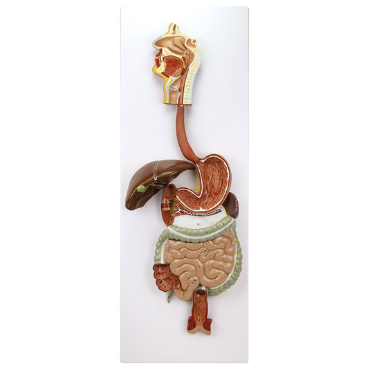 Mô hình kích thước thật thể hiện đường tiêu hóa của con người từ khoang miệng đến trực tràng. Khoang miệng, hầu và phần đầu của thực quản được mổ dọc theo mặt phẳng giữa. Gan được hiển thị cùng với túi mật và tuyến tụy được mổ để lộ các chi tiết bên trong. Dạ dày được mở theo mặt phẳng trán; tá tràng, manh tràng, một phần ruột non và trực tràng được mở ra để lộ phần bên trong. Đại tràng ngang có thể tháo rời. Được làm bằng vật liệu tổng hợp lâu bền. Gắn trên đế polyme bền; Đi kèm với một mô hình giải phẫu 3D tương tác với thực tế tăng cường là một công cụ tuyệt vời để khuyến khích học tập và hỗ trợ. Nền tảng này cho phép sinh viên tham gia phân tích so sánh các mô hình giải phẫu khi họ so sánh và đối chiếu cấu trúc của các cơ quan riêng lẻ. Sáng kiến này cũng cung cấp một nền tảng để giáo dục thường xuyên, tạo cơ hội cho tất cả sinh viên nâng cao kiến thức về giải phẫu, sinh lý và bệnh lý.