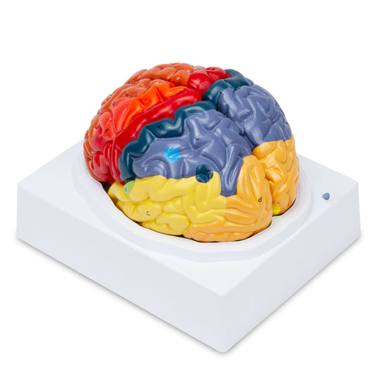 Mô hình não bộ kích thước thật với mã màu khác nhau cho các vùng: thùy trán; thùy parietal; thùy chẩm; thùy thái dương; vỏ não vận động; vỏ não cảm giác; vỏ não limbic; tiểu não; thân não. Các cấu trúc giải phẫu quan trọng được đánh số và chỉ ra bằng các màu khác nhau để dễ hiểu. Được làm từ vật liệu tổng hợp bền lâu. Đi kèm với mô hình giải phẫu 3D tương tác với thực tế ảo tăng cường là công cụ tuyệt vời để khuyến khích việc học và hỗ trợ. Nền tảng này cho phép sinh viên tham gia vào phân tích so sánh các mô hình giải phẫu khi họ so sánh và đối chiếu cấu trúc của các cơ quan riêng lẻ. Sáng kiến này cũng cung cấp nền tảng cho giáo dục thường xuyên, mang đến cơ hội cho tất cả sinh viên nâng cao kiến thức về giải phẫu, sinh lý và bệnh lý sinh lý.