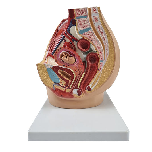 Mô hình kích thước thật bao gồm ba phần với cái nhìn bên trong thông qua một mặt cắt giữa của xương chậu nữ. Mô hình cho thấy các cơ quan bên trong của hệ thống tiết niệu và sinh sản nữ với một phôi thai 8 tuần trong tử cung. Được làm bằng vật liệu tổng hợp bền lâu; Kèm theo một mô hình giải phẫu 3D tương tác với công nghệ thực tế tăng cường là một công cụ tuyệt vời để khuyến khích học tập và hỗ trợ. Nền tảng này cho phép sinh viên tham gia vào phân tích so sánh các mô hình giải phẫu khi họ so sánh và đối chiếu cấu trúc của các cơ quan riêng lẻ. Sáng kiến này cũng cung cấp một nền tảng cho giáo dục liên tục, tạo cơ hội cho tất cả sinh viên nâng cao kiến thức về giải phẫu, sinh lý học và bệnh sinh học.